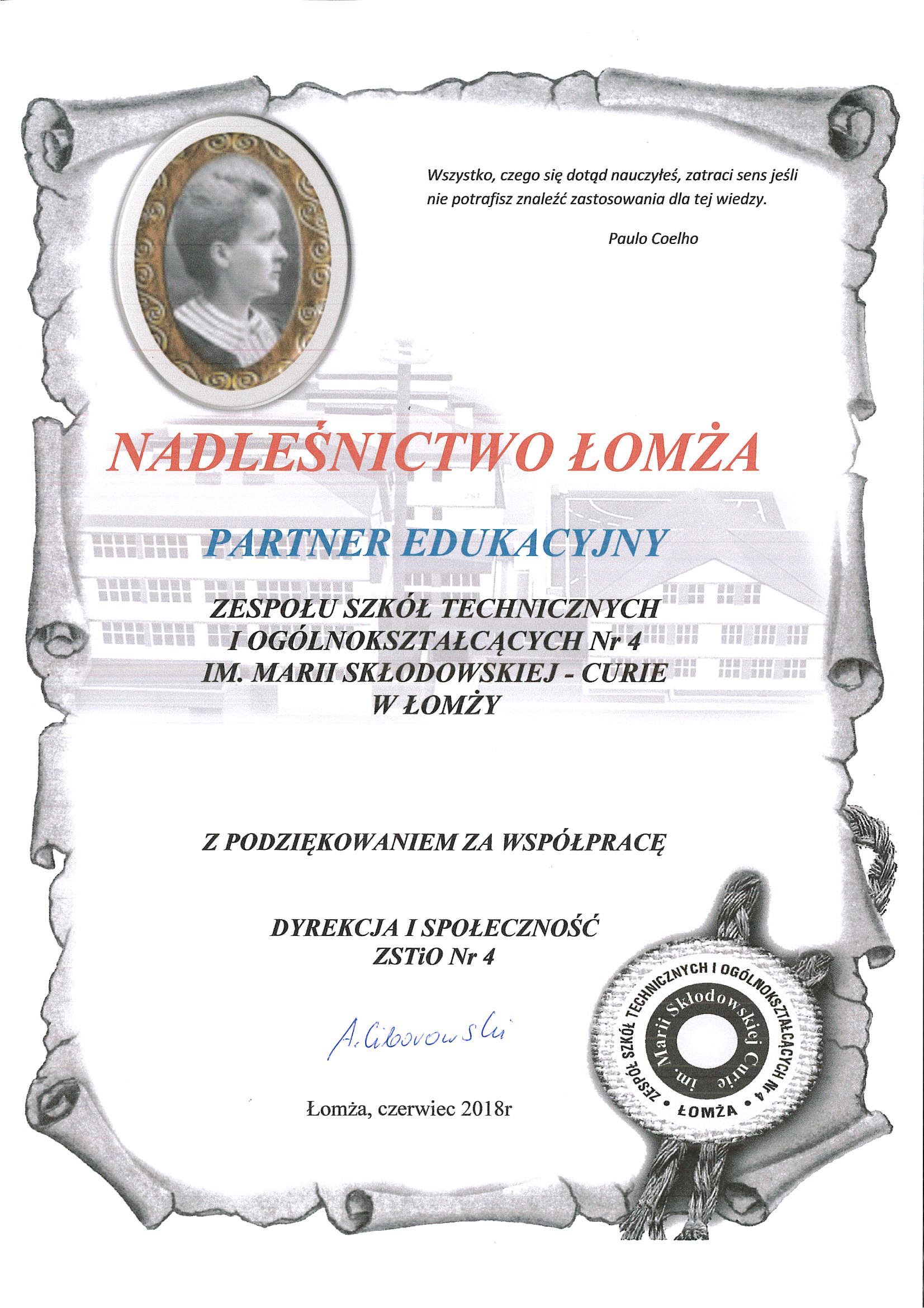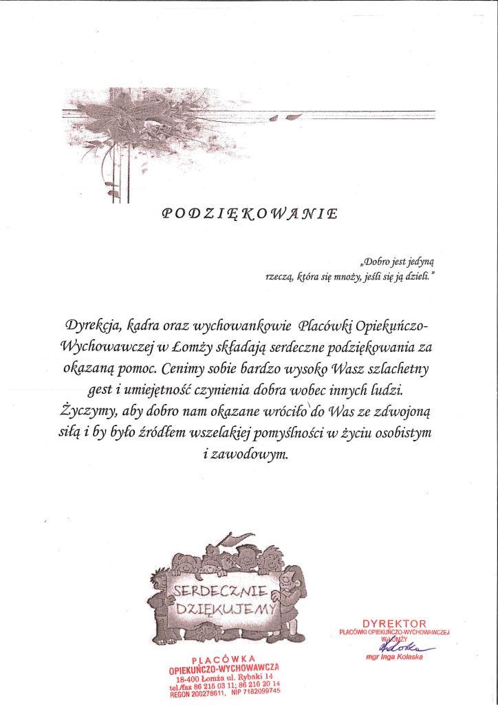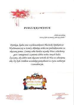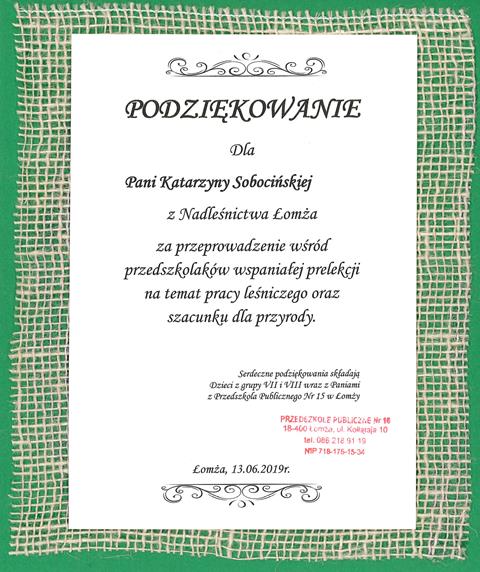2021 Podziękowanie PP nr 15 w Łomży