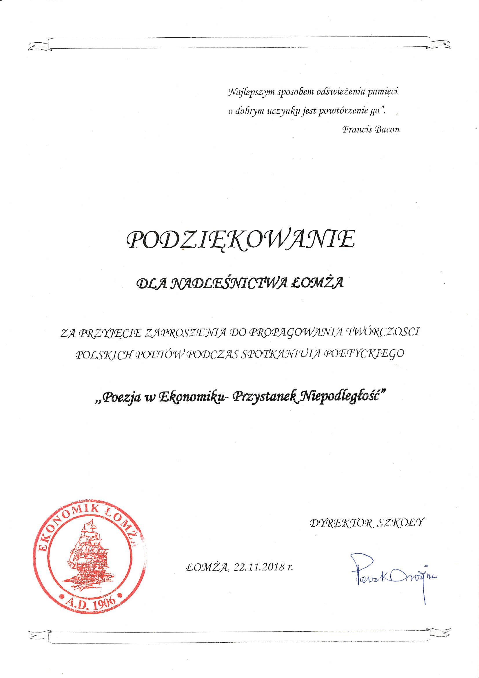 Podziękowanie z Biblioteki Miejskiej w Łomży
