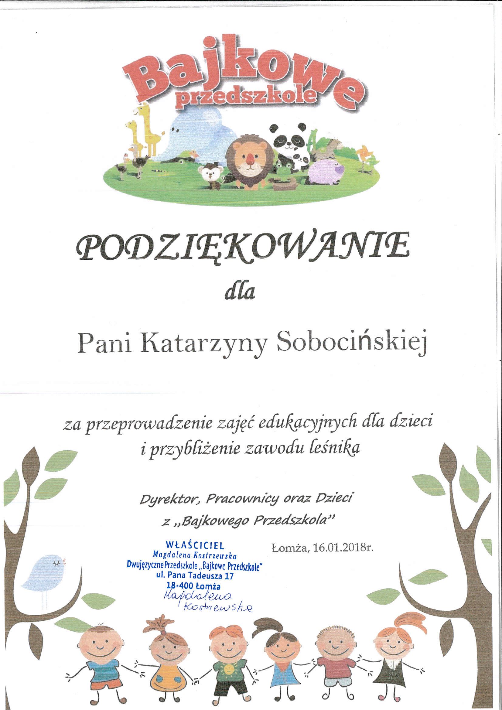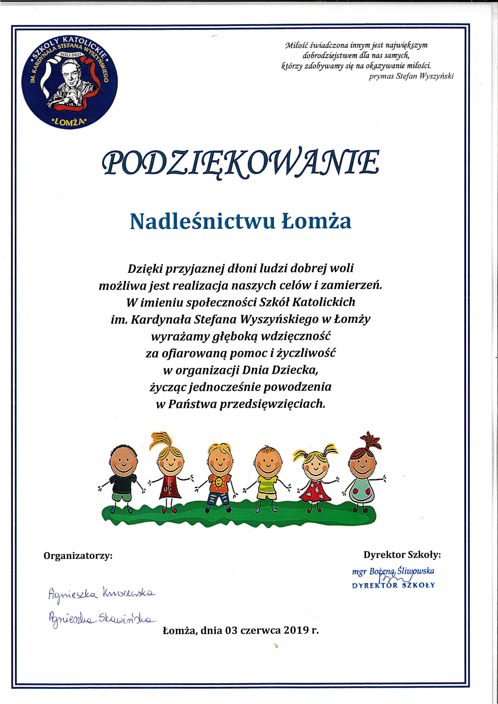 Podziękowanie za udział w Dniu Dziecka - Szkoły Katolickie
