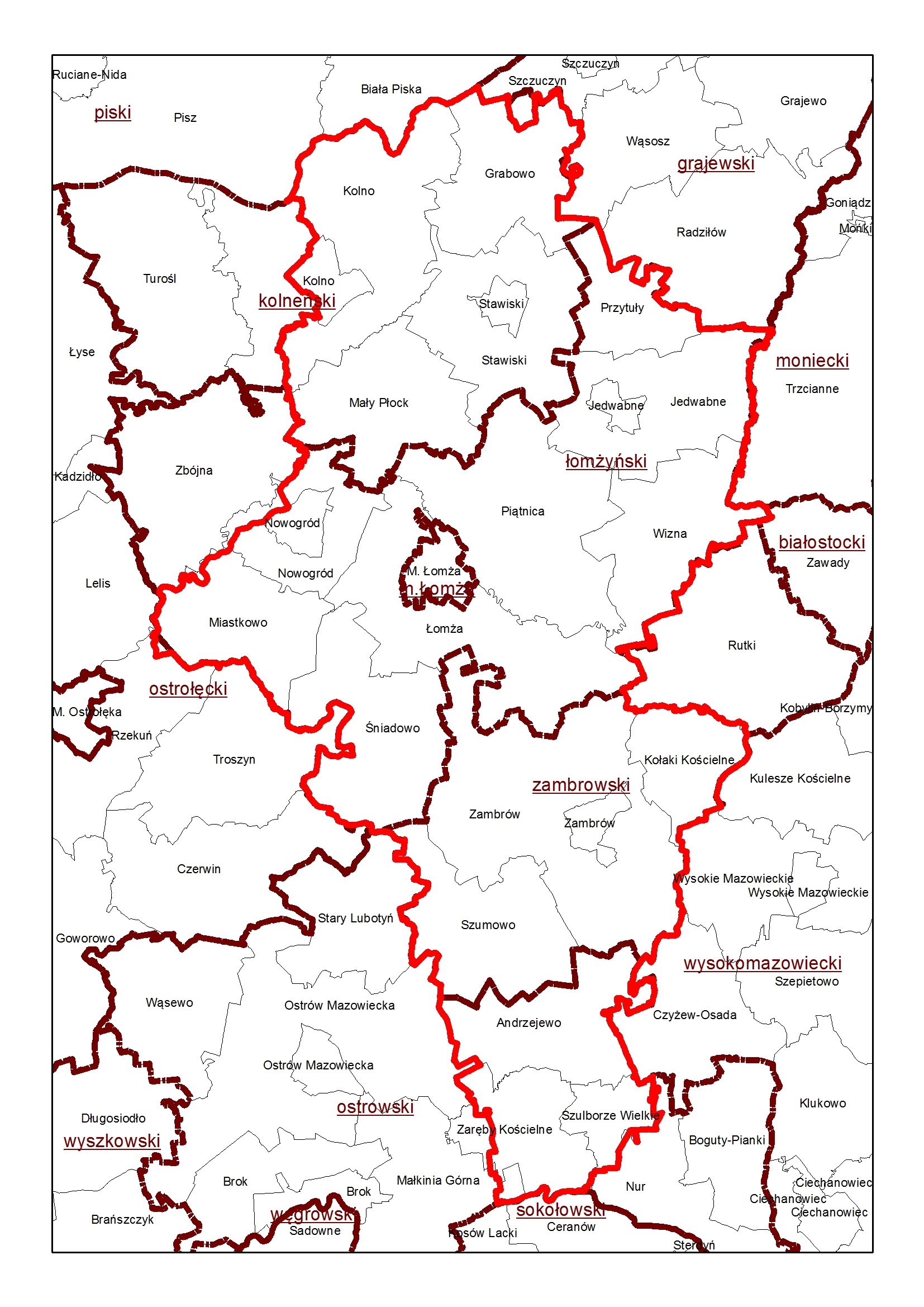 Zasięg terytorialny Nadleśnictwa Łomża